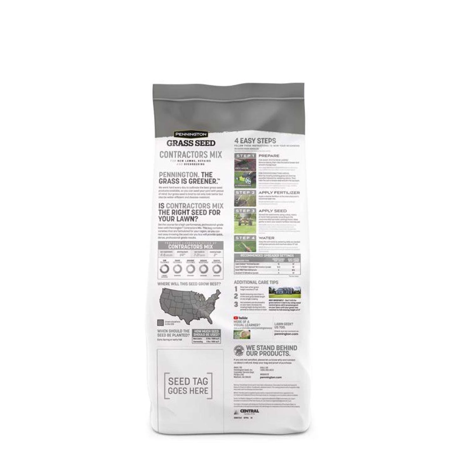 Set the course for a high-performance, professional-grade lawn with Pennington Contractors Mix, so you can rest easy knowing the seed mix you buy. Once germinated, the grass will grow thick and full. While most grass seed companies buy their seed on the open market, we are the only major grass seed company that works directly with a network of dedicated growers. Built on decades of trust and integrity, our relationships with seed growers and their families now span multiple generations. Our legacy of working directly with farmers to bring you the finest grass seed possible helps ensure their success and ours. At Pennington, we know our seed and the farmers who grow it. From field to final product, that’s the Pennington way. Ideal for new lawns, overseeding and lawn repair Provides quick, dense, professional-grade results This all-purpose grass seed mix contains grass seed varieties that are formulated for the Southern US This sun-tolerant seed should be planted in the early spring or early fall and is optimal for areas getting 4 to 6 hours of sun
