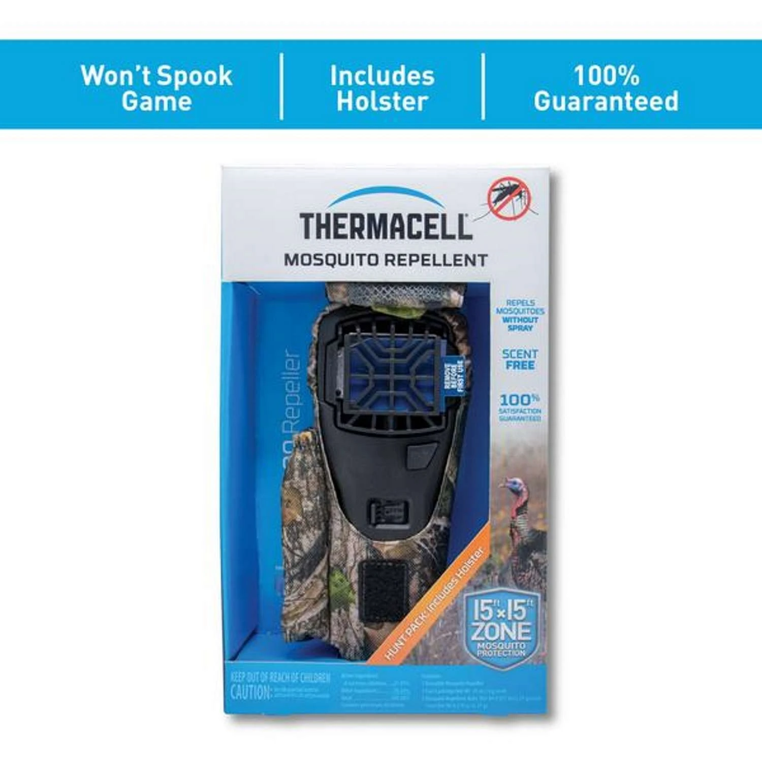 | What's Included | INCLUDES: One repeller, one camo holster, one clip, one 12-hour fuel cartridge, and three 4-hour repellent mats. |